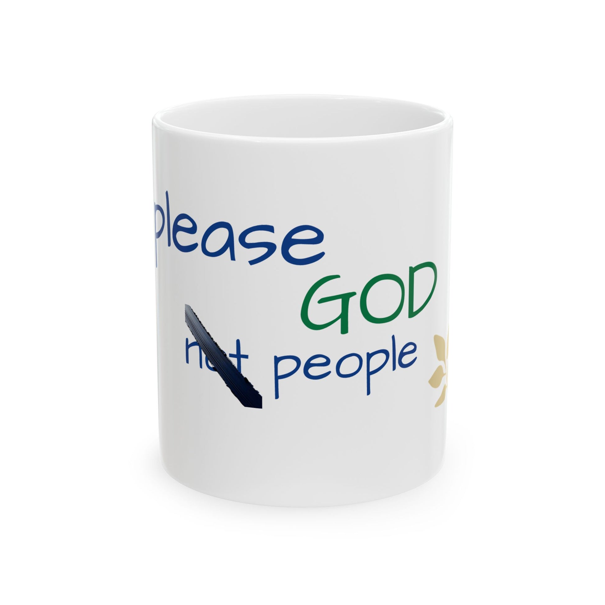 This ceramic mug with a glossy finish features the inspirational message 'please God not people .Perfect for those who want a daily reminder to stay true to themselves and live according to their values. Great for a faith-based affirmation in their daily routine. Ideal gift for religious holidays or as a motivational present for a loved one.